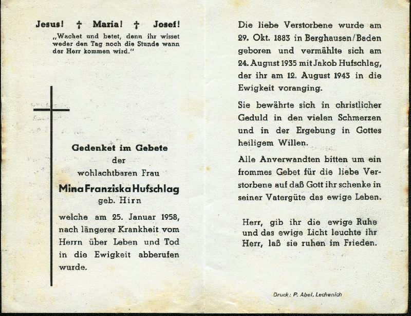 ∞ 24.8.1935 Jakob Hufschlag † 12.8.1943 |