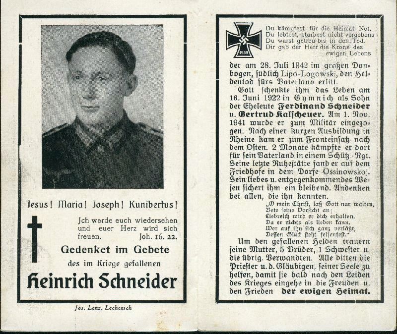 Eltern: Ferdinand Schneider und Gertrud Kalscheuer; Gefallener 2. Weltkrieg |