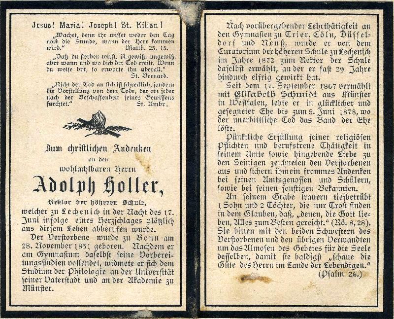 Rektor der höheren Schule Lechenich; ∞ 17.9.1867 Elisabeth Schmidt † 5.6.1878; 3 K. |
