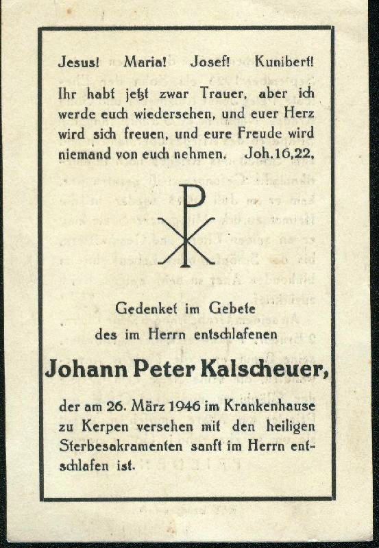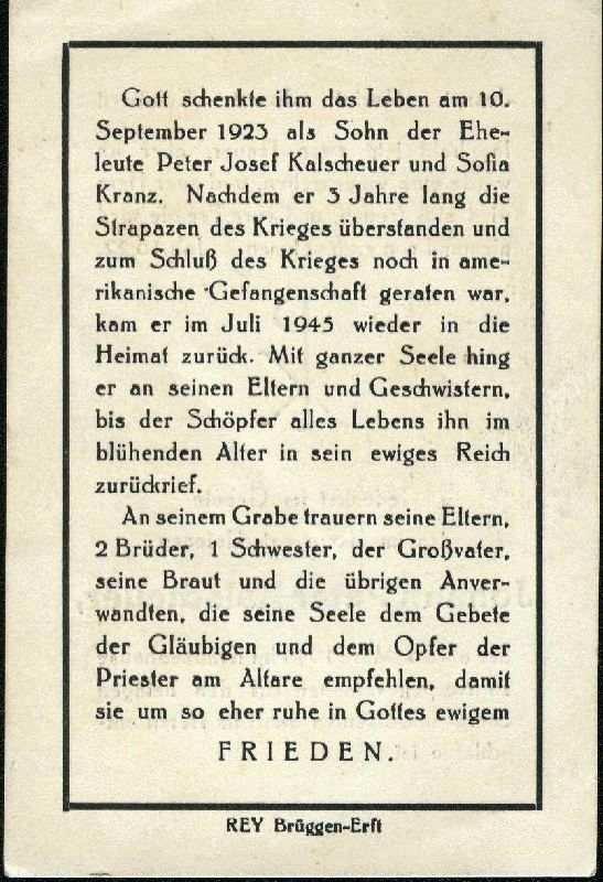 Eltern: Peter Josef Kalscheuer und Sofia Kranz |
