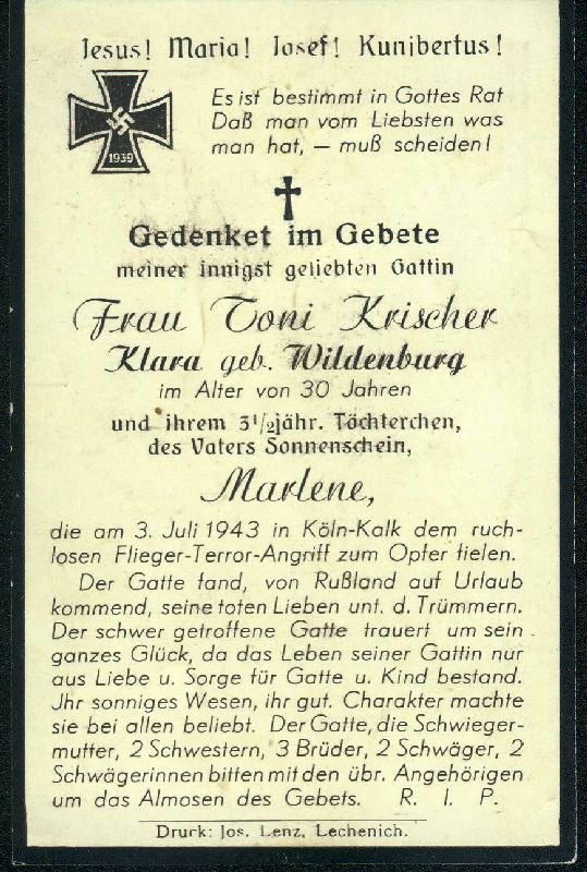 ∞ Toni Krischer; 1 K. ; Opfer 2. Weltkrieg |