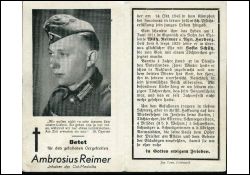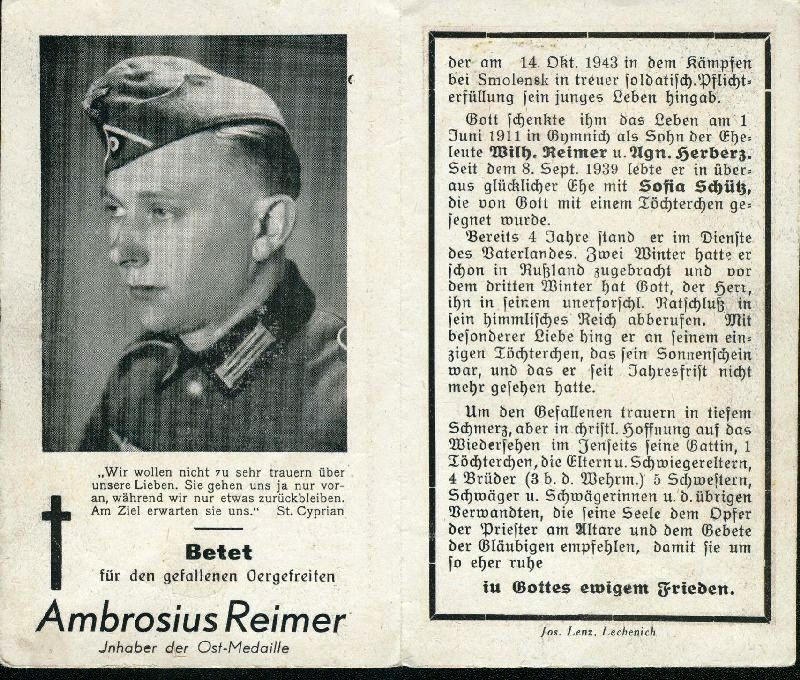 Eltern: Wilhelm Reimer und Agnes Herberz; ∞ 8.9.1938 Sofia Schütz; 1 K. ; Gefallener 2. Weltkrieg |