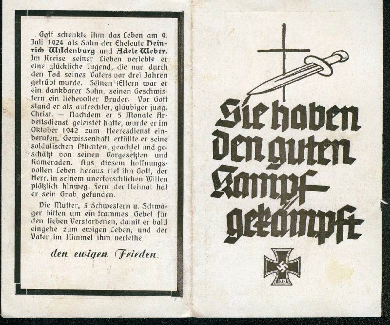 Eltern: Heinrich Wildenburg und Adele Weber; Gefallener 2. Weltkrieg |