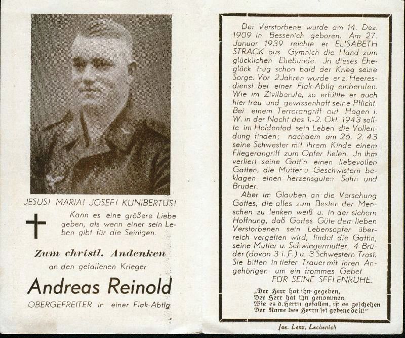 ∞ 27.1.1939 Elisabeth Strack; Gefallener 2. Weltkrieg; aus Gymnich |