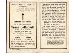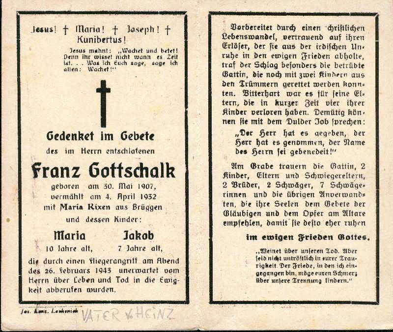 Eltern: Franz Gottschalk, † 26.2.1943, und Maria Rixen; Opfer 2. Weltkrieg |