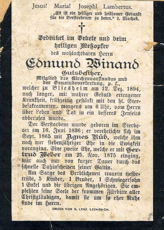 Gutsbesitzer; Mitgl. d. Kirchenvorstandes u. d. Gemeindevertretung; ∞ 16.6.1865 Agnes Rüb; ∞ 25.11.1875 Gertrud Weber; 5 K. |