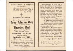 Eltern: Theodor Buß † 26.2.1932 und Helene Kremer † 26.2.1932 |