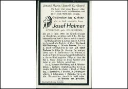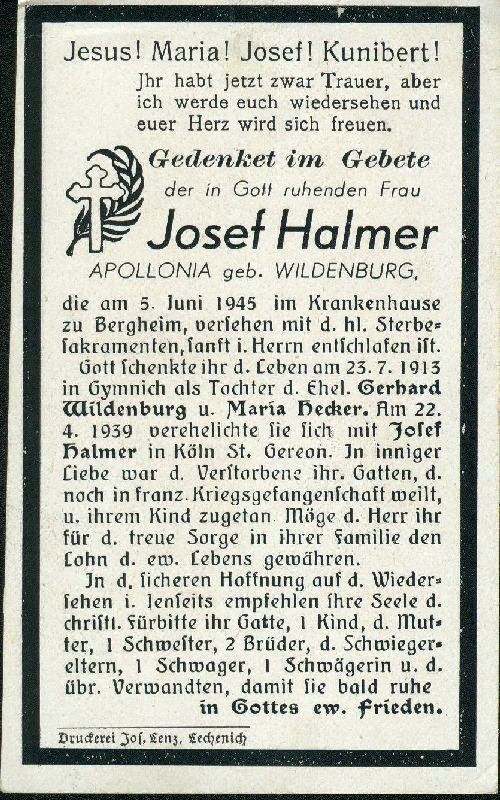 Eltern: Gerhard Wildenburg und Maria Hecker; ∞ 22.4.1939 Josef Halmer; 1 K. |
