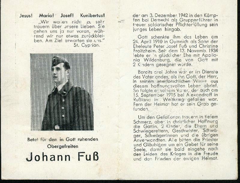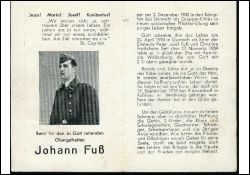 Eltern: Peter Josef Fuß † 15.9.1914 und Christine Froitzheim; ∞ 13.11.1934 Apollonia Wildenburg; 2 K.; Gefallener 2. Weltkrieg |