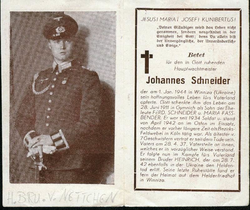 Eltern: Ferdinand Schneider und Maria Fassbender; Gefallener 2. Weltkrieg |
