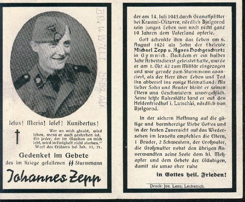 Eltern: Michael Zepp und Agnes Hochgeschurtz; Gefallener 2. Weltkrieg |