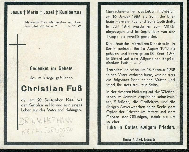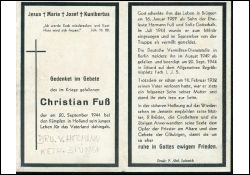 Eltern: Herrman Fuß † 18.2.1932 und Sofia Gottschalk; Gefallener 2. Weltkrieg |