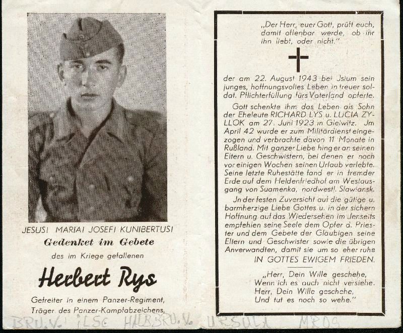 Eltern: Richard Lys und Lucia Zyllok; Gefallener 2. Weltkrieg |
