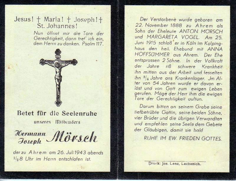Eltern: Anton Mörsch und Margareta Vogel; ∞ 25.6.15 Anna Hoffsümmer; 2 K. |