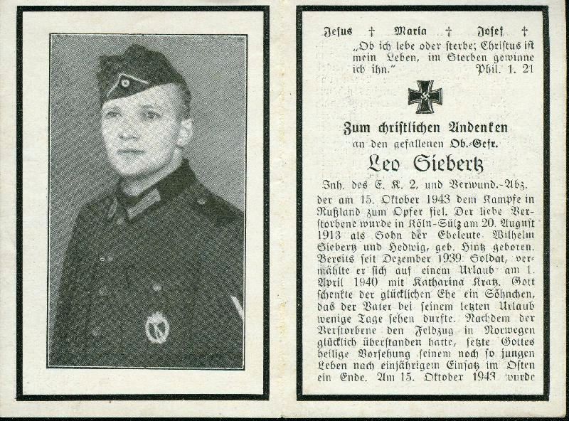 Eltern: Wilhelm Siebertz und Hedwig Hintz; ∞ 1.4.1940 Katharina Kratz, 1K.; Gefallener 2. Weltkrieg |