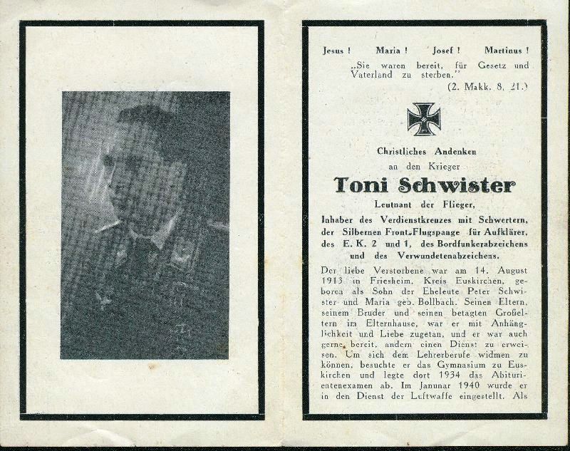 Lehrer; Eltern: Peter Schwister und Maria Bollbach; Gefallener 2. Weltkrieg |
