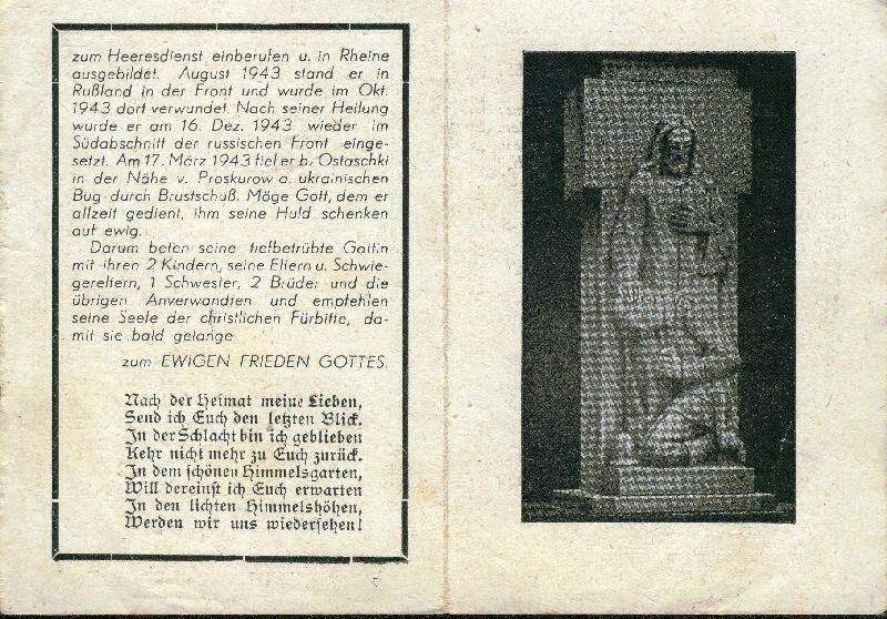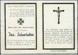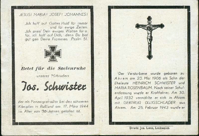 Kraftfahrer; Eltern: Heinrich Schwister und Maria Rosenbaum; ∞ 30.4.1932 Gertrud Olligschläger; 2 K.; Gefallener 2. Weltkrieg |