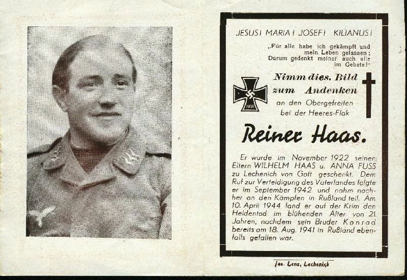 Eltern: Wilhelm Haas und Anna Fuss; Gefallener 2. Weltkrieg |