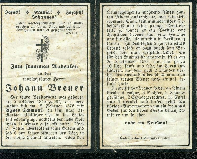 ∞ 19.2.1876 Agnes Schmuhl; 11 K. davon 6 † |