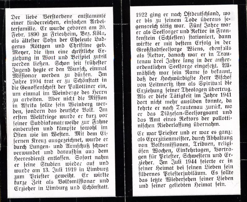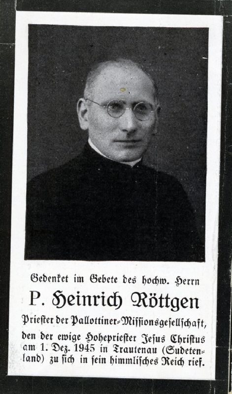 Eltern: Ludgerus Röttgen und Christine Meyer; 1904 Eintritt Pallottinerorden; Priesterweihe 13.7.1919 in Limburg; Rektor in Frankenstein, Wien, Trautenau |