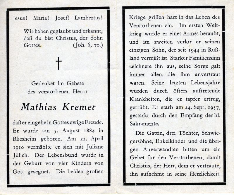 ∞ 22.4.1910 Juliane Jülich; 4 K. davon 1 † |