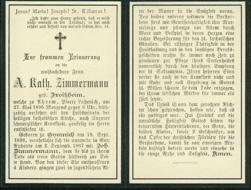∞ 2.9.1867 Johann Zimmermann; 4 K.; davon 2 † |