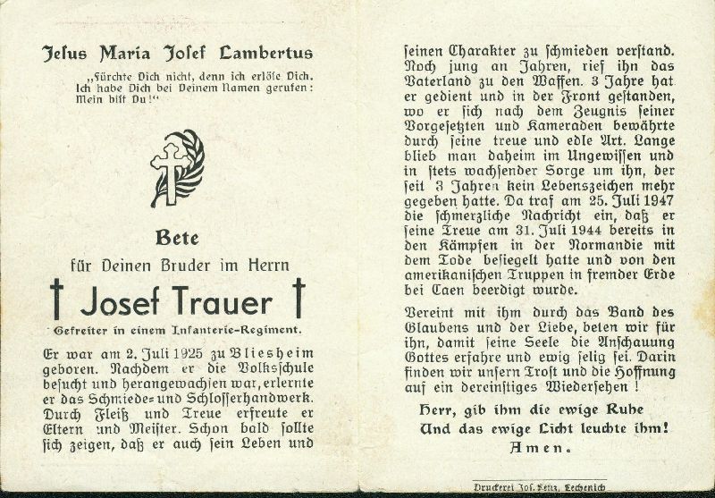 Schmied und Schlosser; Gefallener 2. Weltkrieg |