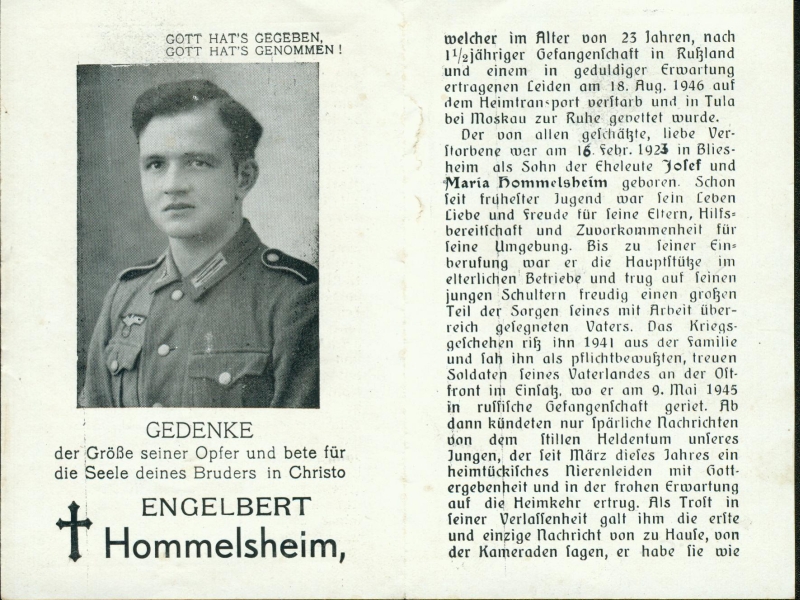 Eltern: Josef und Maria Hommelsheim; Gefallener 2. Weltkrieg |