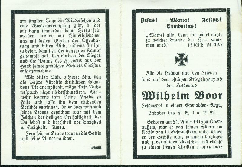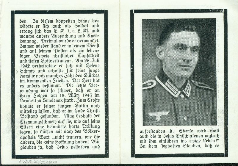 ∞ 26.7.1942 Helene Schmitz aus Bliesheim; Gefallener 2. Weltkrieg |