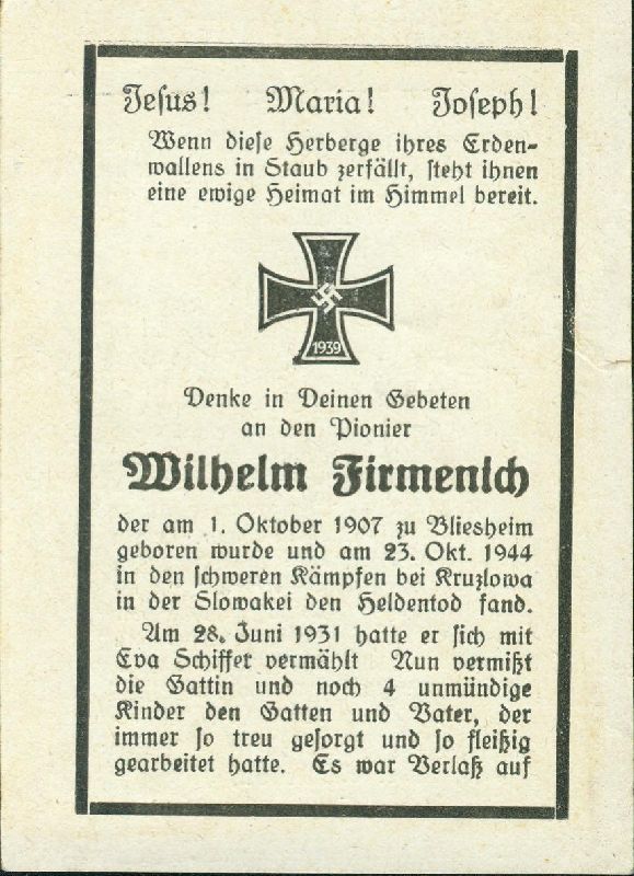 ∞ 28.7.1931 Eva Schiffer; 4 K.; Gefallener 2. Weltkrieg |