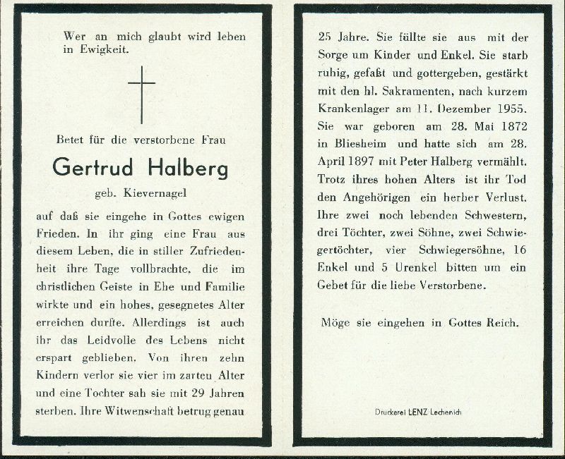 ∞ 28.4.1897 Peter Halberg † 1930; 10 K. davon 5 † |