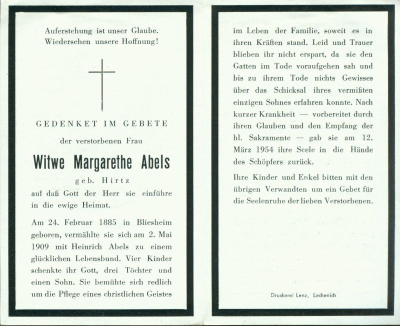 ∞ 2.5.1909 Heinrich Abels; 4 K. |
