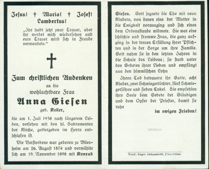 ∞ 19.11.1898 Konrad Giesen; 9 K. davon 1 † |