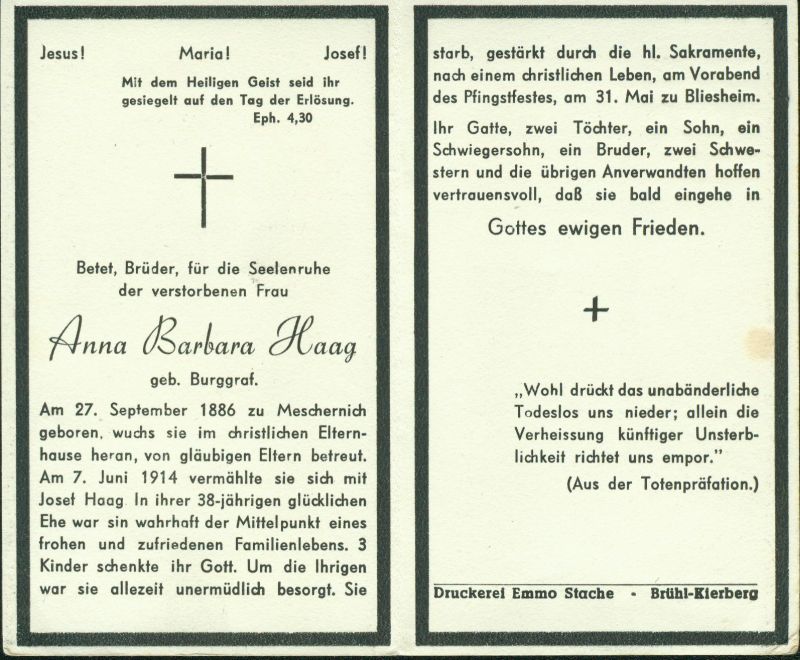 ∞ 7.6.1914 Josef Haag; 3 K. |