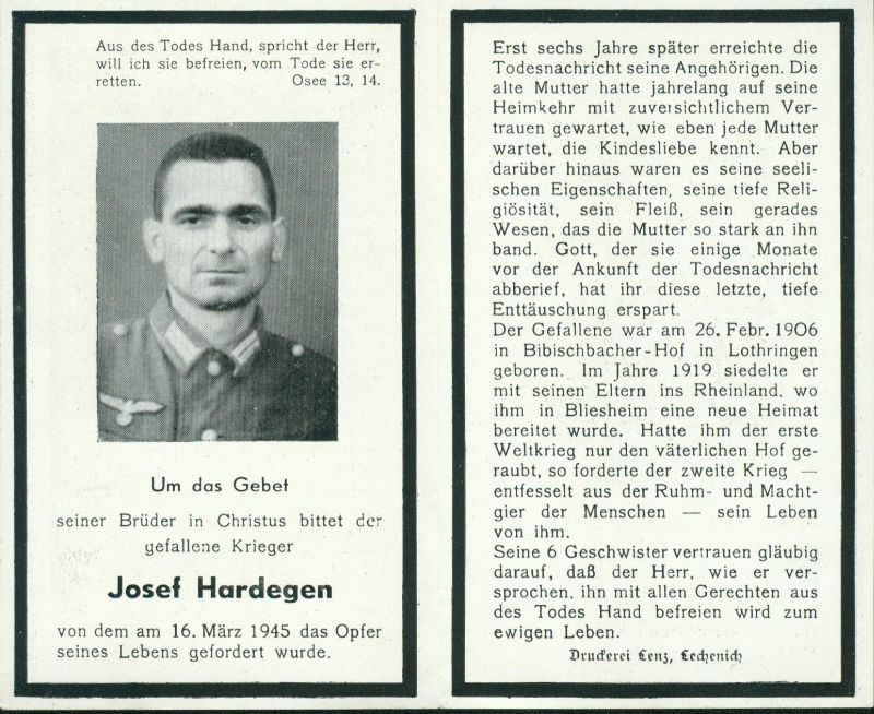 ab 1919 in Bliesheim; Gefallener 2. Weltkrieg |