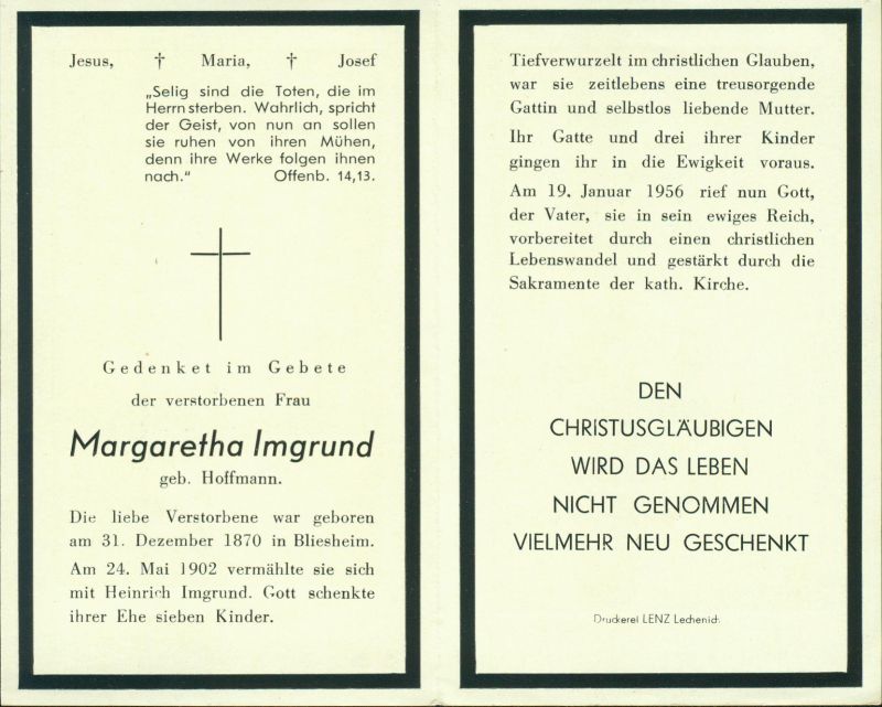 ∞ 24.5.1902; Heinrich Imgrund †; 7 K., davon 3 † |