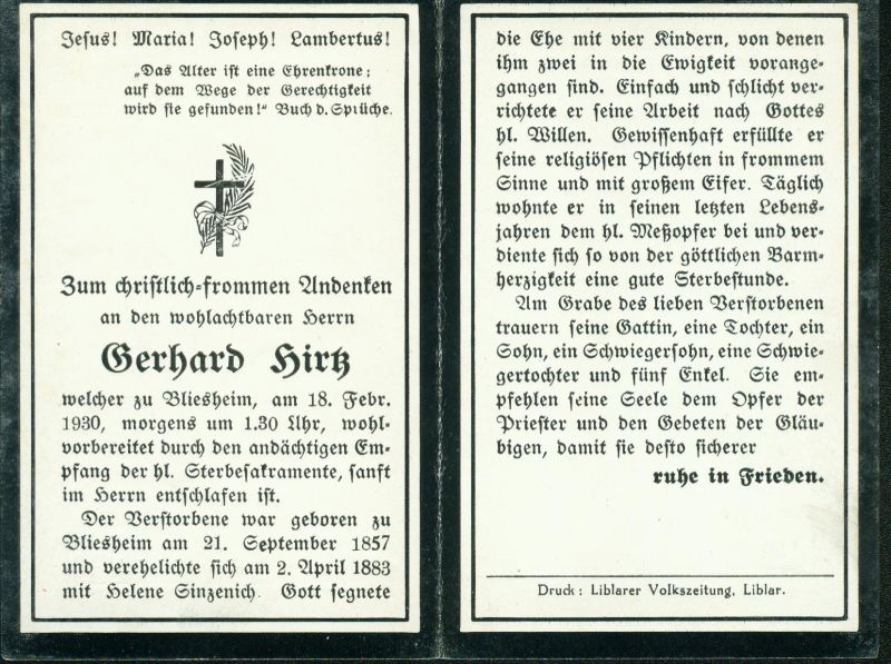 ∞ 2.4.1883 Helene Sinzenich; 4 K., davon 2 † |