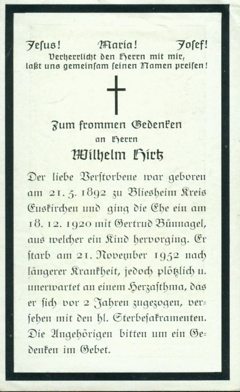 ∞ 18.12.1920 Gertrud Bünnagel; 1 K. |