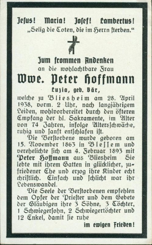 ∞ 4.2.1893 Peter Hoffmann †; 6 K. |