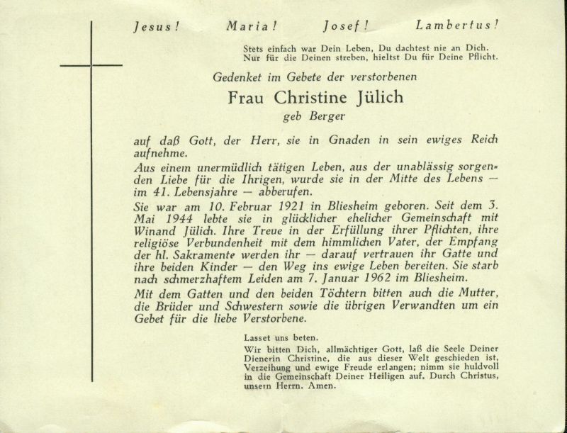 Jülich, geb. Berger | Vorname: |