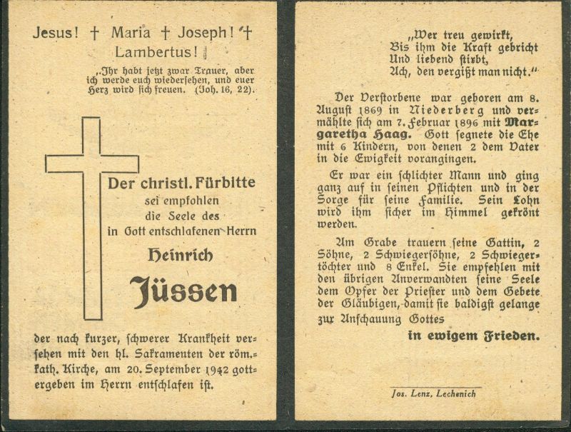 ∞ 7.2.1896 Margaretha Haag; 6 K. davon 2 † |