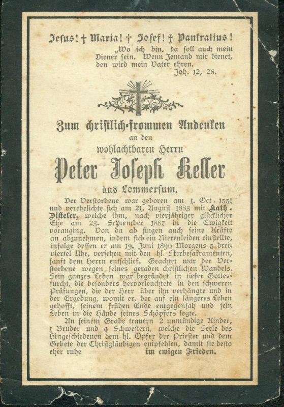 ∞ 21.8.1883 Katharina Disteler † 23.9.1887; 2 K. |