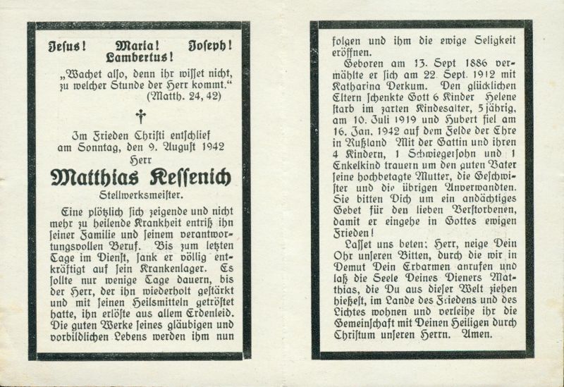 Stellwerksmeister; ∞ 22.9.19012 Katharina Derkum; 6 K. davon 2 † |