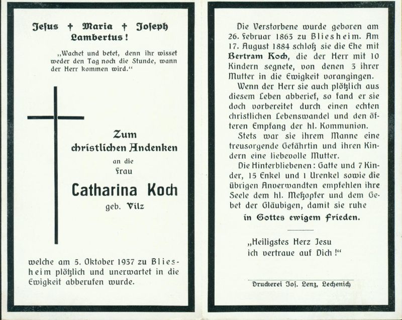 ∞ 17.8.1884 Bertram Koch; 10 K. davon 3 † |