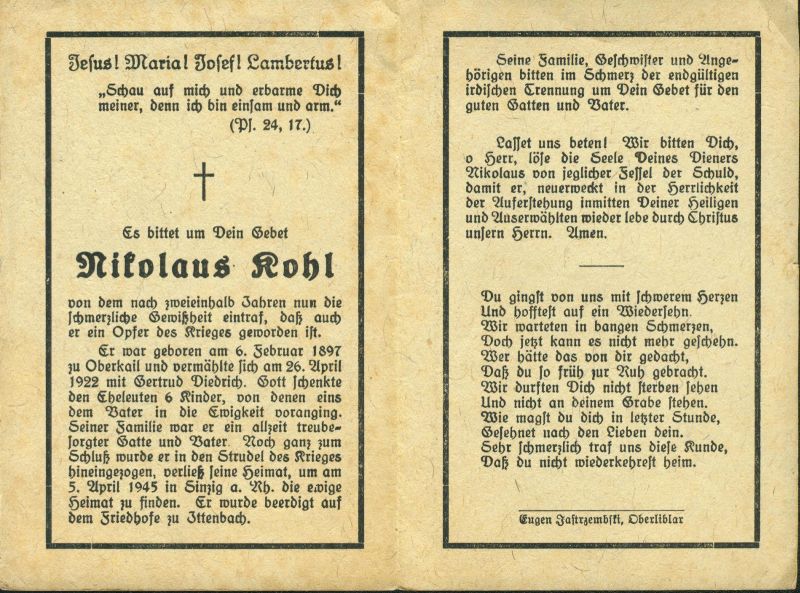 ∞ 26.4.1922 Gertrud Diederich; 6 K. davon 1 †; Gefallener 2. Weltkrieg |