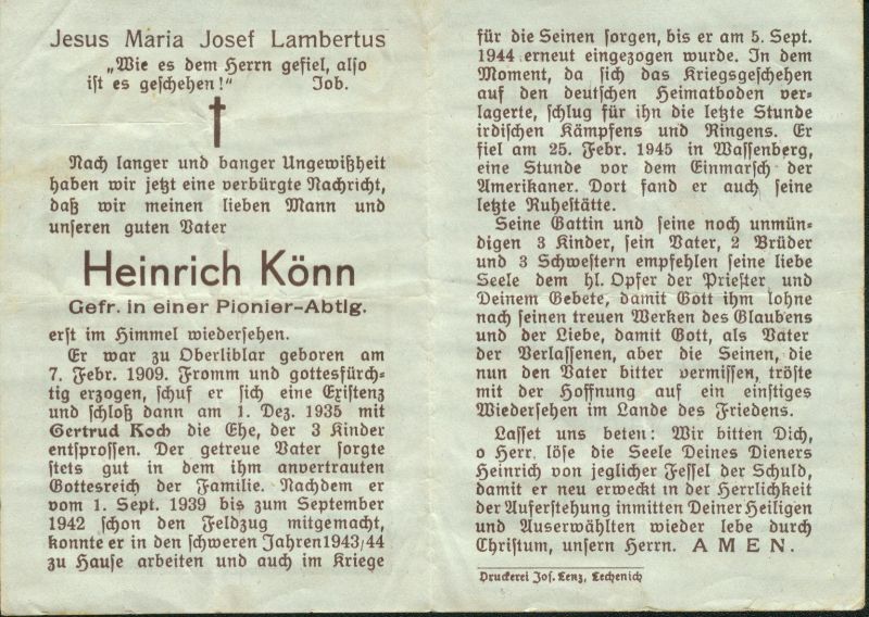 ∞ 1.12.1935 Gertrud Koch; 3 K.; Gefallener 2. Weltkrieg |