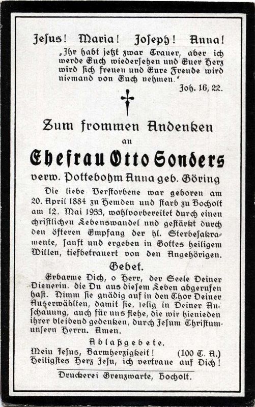 Sonders, geb. Göring verw. Pottebohm | | Vorname: |