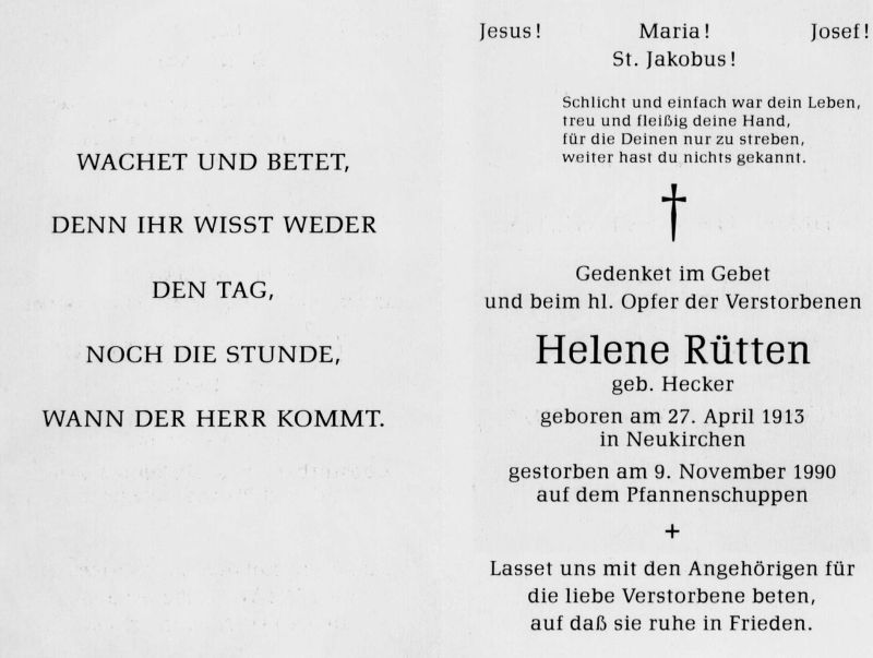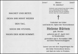 Rütten, geb. Hecker | Vorname: |