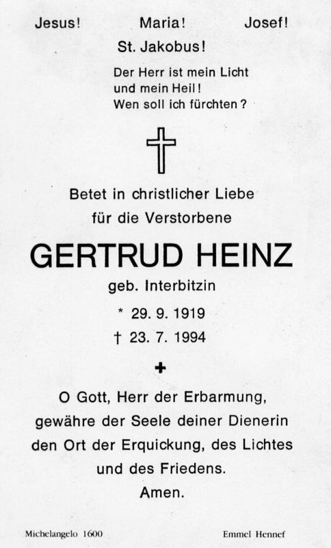 Heinz, geb. Interbitzin | Vorname: |