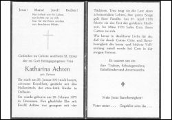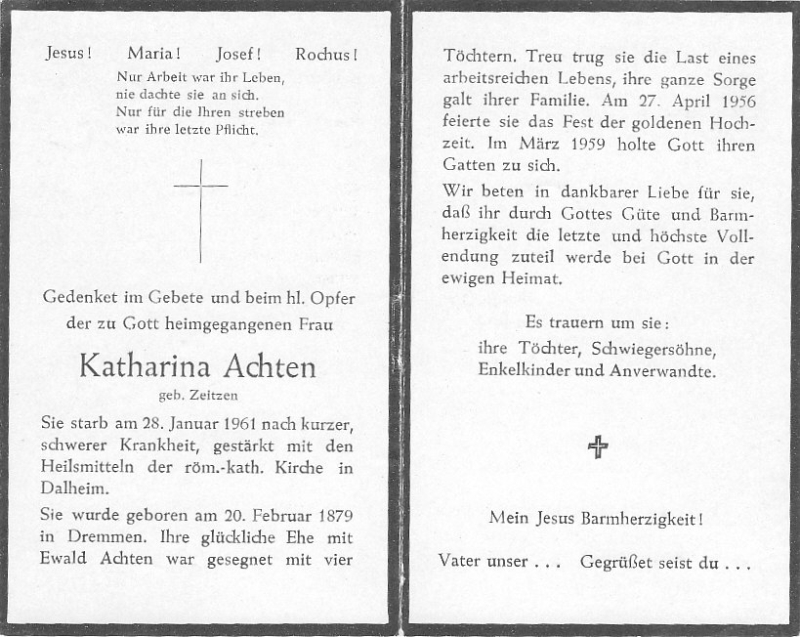 ∞ 1906 Ewald Achten, † März 1959; 4 Töchter; Goldhochzeit 27.4.1956 |